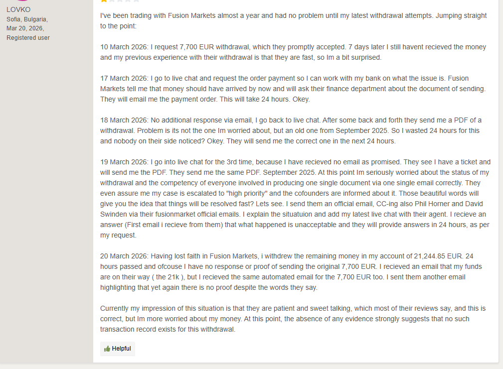 Investors report that Fusion Markets refuses to honor profitable trades, deducts fees arbitrarily, and blocks withdrawals. Victims describe frustration and losses despite following all platform rules.