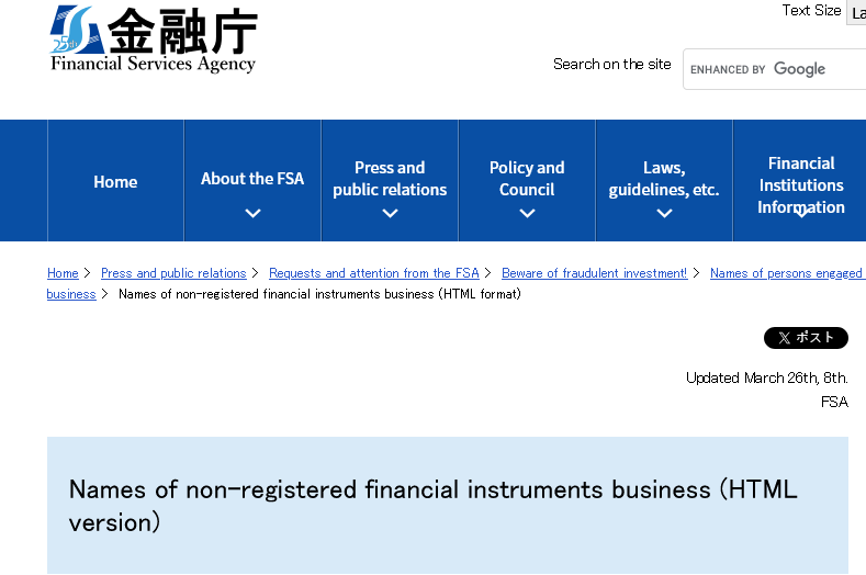 | Sanctioned By | Japan FSA — www.fsa.go.jp |