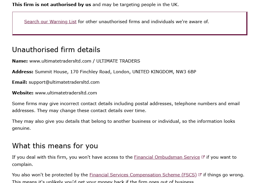This alone makes Ultimate Traders unsafe for investors.